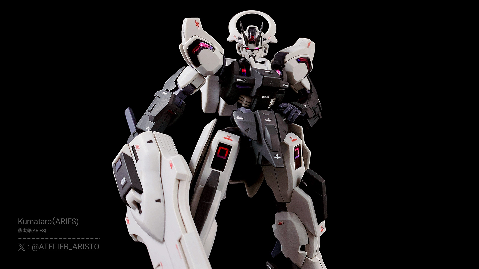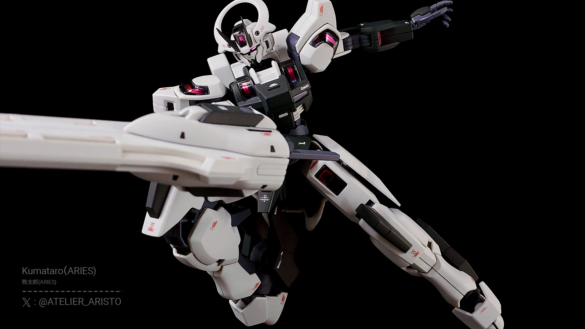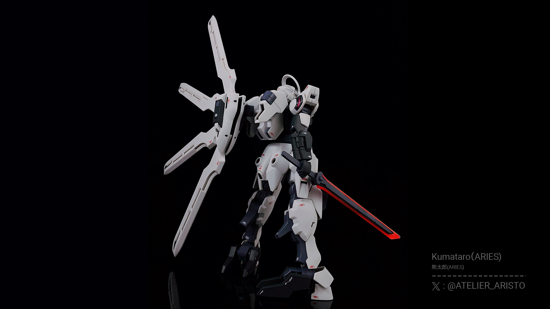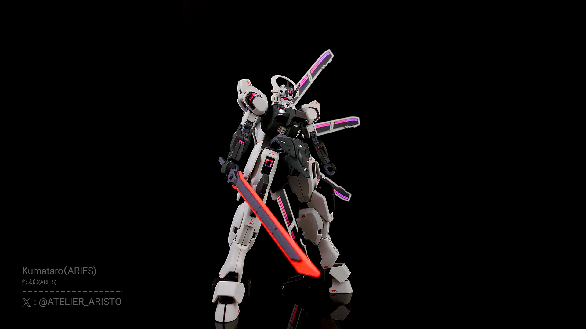 キットそのものを活かし、パーツの塗り分けなどのディテールアップを中心に仕上げられています。機体のカラーリングは基本的に設定準拠となっているものの、コントラストが強調されるような調色がなされています。また、関節の補強を行うことで安定したポージングを可能にしている点もポイントです。